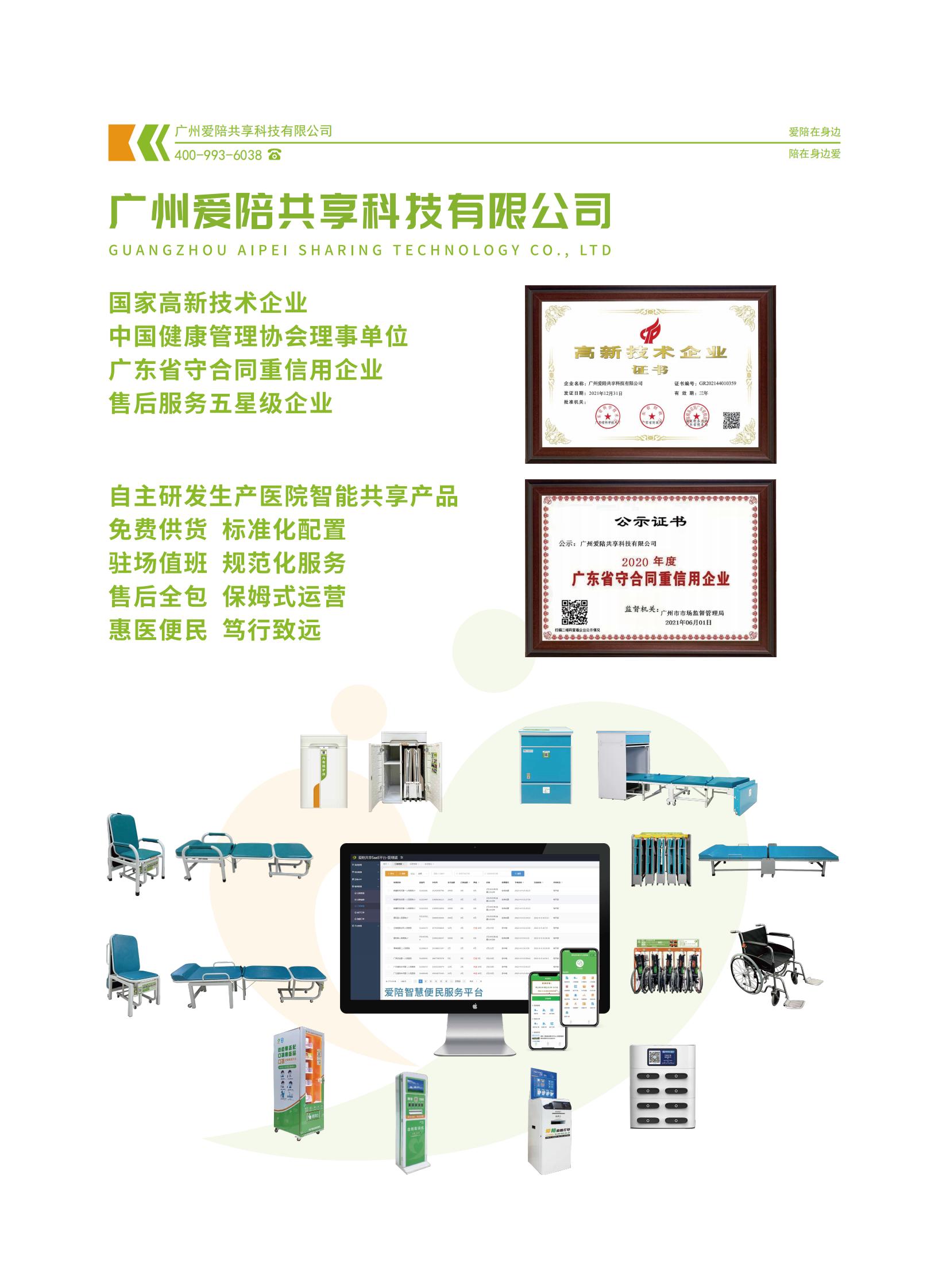 廣州愛陪共享科技有限公司專注于醫(yī)院智能共享產(chǎn)品與服務(wù),技術(shù)創(chuàng)新、研產(chǎn)一體,模式創(chuàng)新、智慧服務(wù),是國家高新技術(shù)企業(yè)、廣東省守合同重信譽(yù)企業(yè)、中國健康管理協(xié)會理事單位。